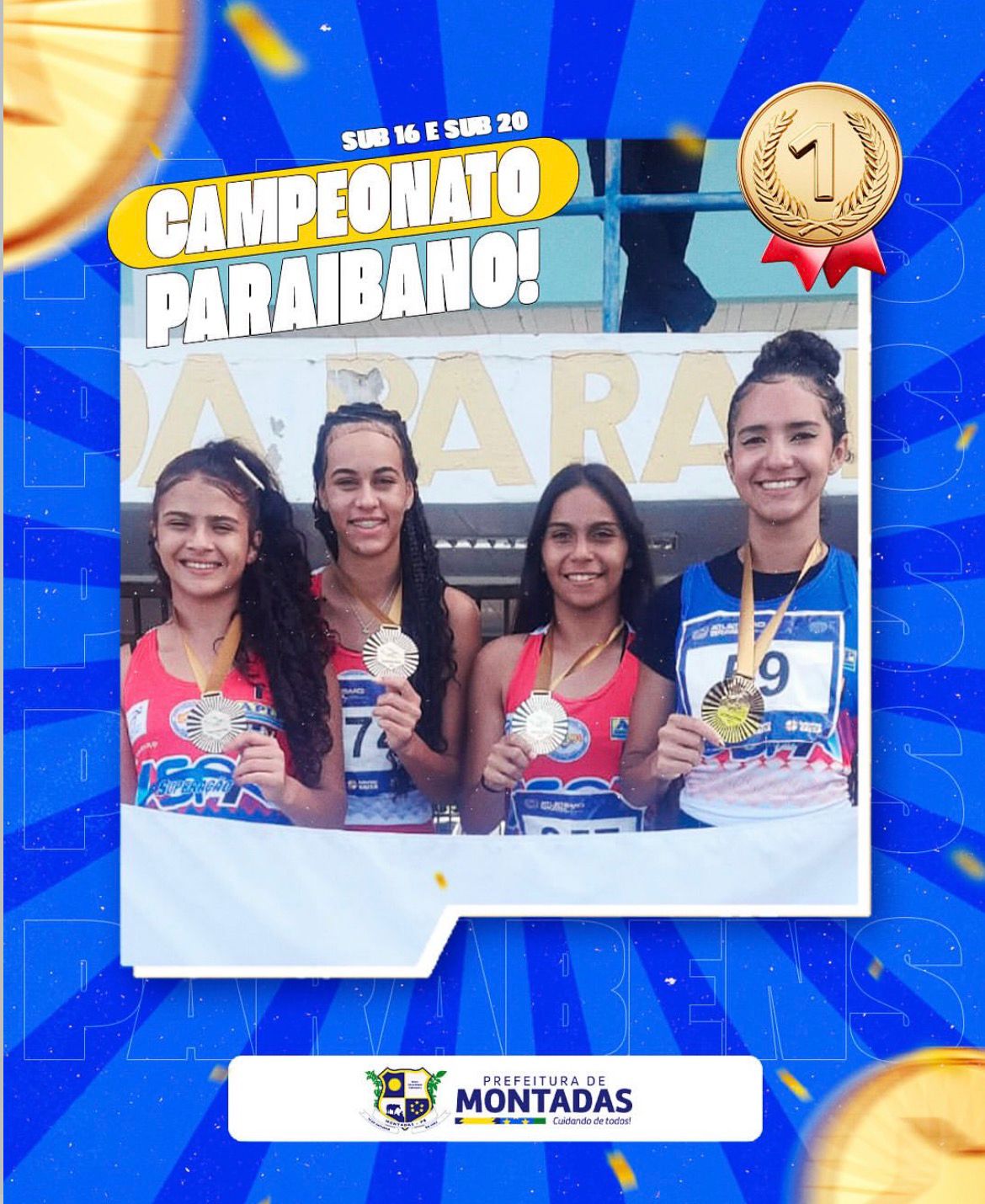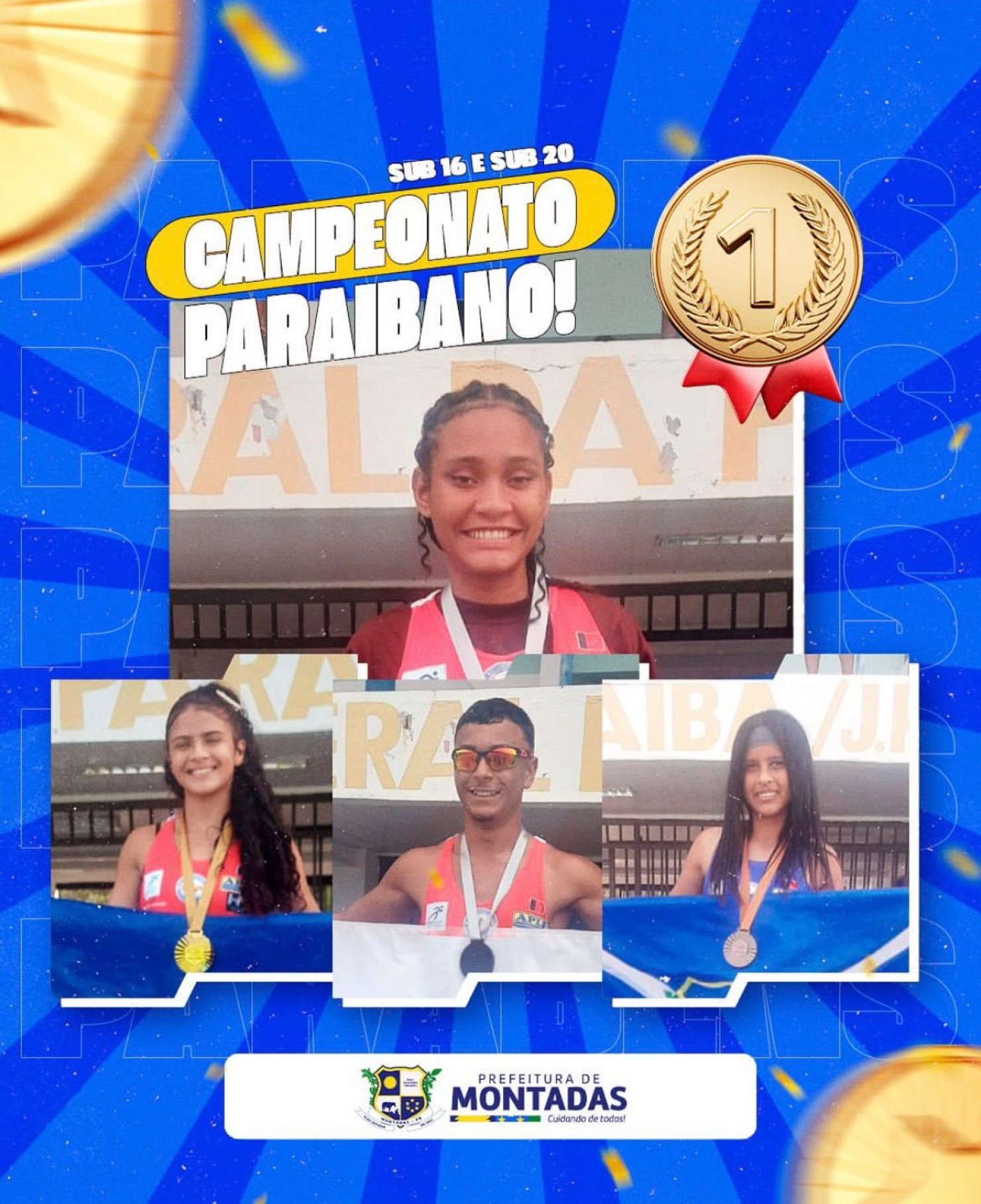 A Prefeitura Municipal de Montadas, por meio da Secretaria de Esporte, celebra o desempenho histórico de nossos atletas nas categorias Sub-16 e Sub-20 do Campeonato Paraibano Loterias Caixa de Atletismo. A delegação montadense subiu ao pódio diversas vezes, reafirmando o município como um celeiro de talentos no esporte estadual.