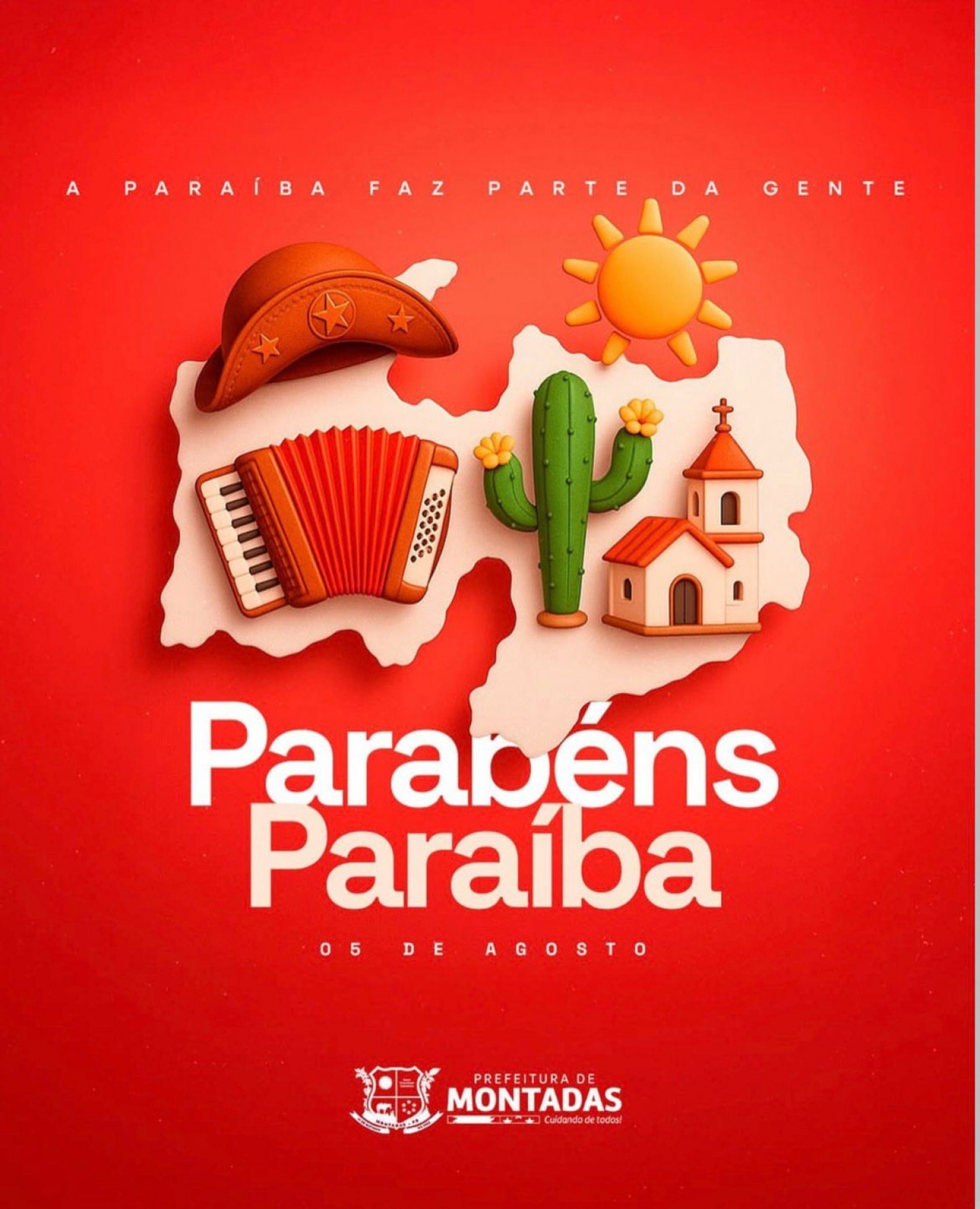Neste 5 de agosto, a Prefeitura Municipal de Montadas se une a todos os paraibanos para celebrar os 440 anos de fundação do nosso Estado. Somos parte de uma trajetória construída com resiliência, marcada por uma cultura vibrante e um povo que carrega no peito o orgulho de suas raízes.