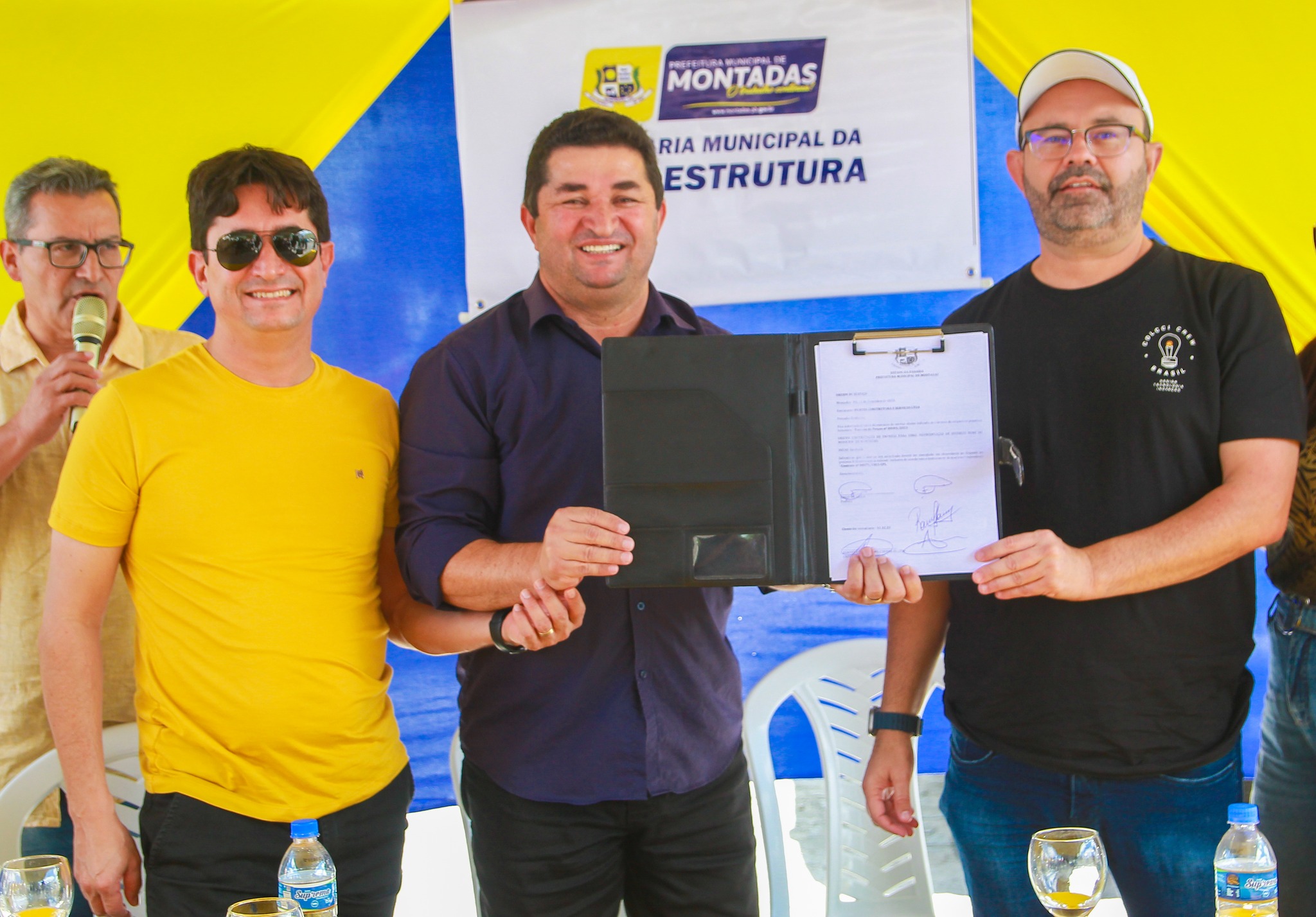 O Prefeito de Montadas, Jonas de Souza, assinou na manhã de ontem, a ordem de serviço para pavimentação, em paralelepípedos de 10 ruas do município. A solenidade ocorreu na rua Wilson Pereira dos Santos, uma das ruas que serão calcadas. Estiveram presentes o vice-prefeito, Cássio Martins Avelino; o Deputado Estadual, Fábio Ramalho e o Presidente da Ca mara de Vereadores de Lagoa Seca, Fabiano Ramalho; os vereadores Júnior de Iremar -Presidente da Câmara; Helium Silva, Yuri Veríssimo, Luciano Ferreira, Marcos Justino, Kátia Silva e Michel Platimir; Além deles, o Chefe de Gabinete, Antonio Veríssimo de Souza Segundo, o Secretário da Infraestrutura, Leandro de Souza; o Secretário da Agricultura, Josimar; a Secretária da Educação, Neuracir de Souza Freire; a Secretária de Cultura, Kárcia Paulino; a Secretária de Finanças, Kátia Ramalho; o Secretário da Assistência Social, Marcelo Vieira Costa; o Secretário da Saúde, Joseilton Paulo de Souza, o Secretário dos Esportes, José Antonio e o representante da Construtora Pontes LTDA; além de dezenas de famílias, que prestigiaram a solenidade.
