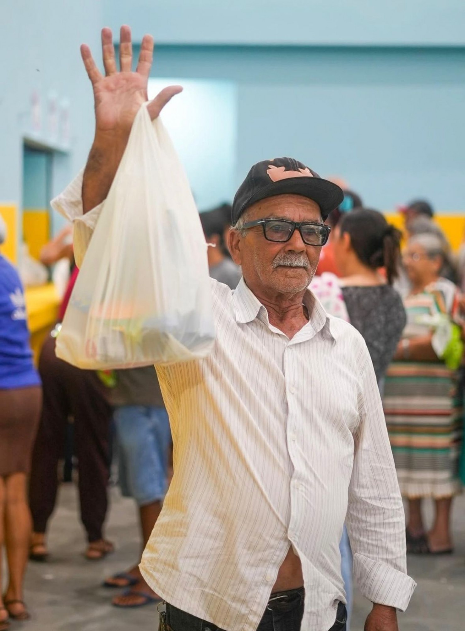 Neste ano, a gestão municipal distribuiu mais de 2 toneladas de alimentos. Para garantir uma ceia completa e nutritiva, o kit contou com: